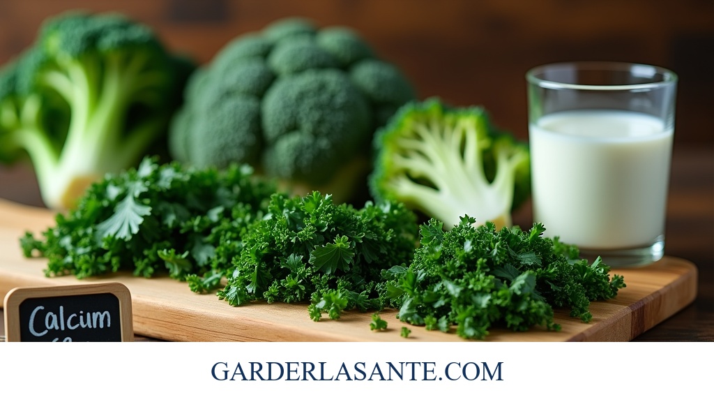 Les légumes les plus riches en calcium biodisponible incluent les légumes-feuilles vert foncé comme le chou kale (150 mg/100 g), les épinards (99 mg/100 g) et le bok choy (105 mg/100 g). Les crucifères comme le brocoli (47 mg/100 g) et les choux de Bruxelles (42 mg/100 g) en contiennent également en quantités intéressantes. Pour maximiser l’absorption, associez-les à une source de vitamine D (soleil, poissons gras) et évitez les excès d’oxalates (présents dans les épinards crus) qui peuvent limiter l’assimilation du calcium.